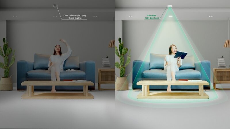 - Với cảm biến chuyển động Lumi, gia chủ có thể dễ dàng cài đặt để toàn bộ đèn bật sáng khi người đi vào khu vực quét của cảm biến; tính năng này đặc biệt phù hợp với những gia đình có người lớn tuổi và trẻ nhỏ.
